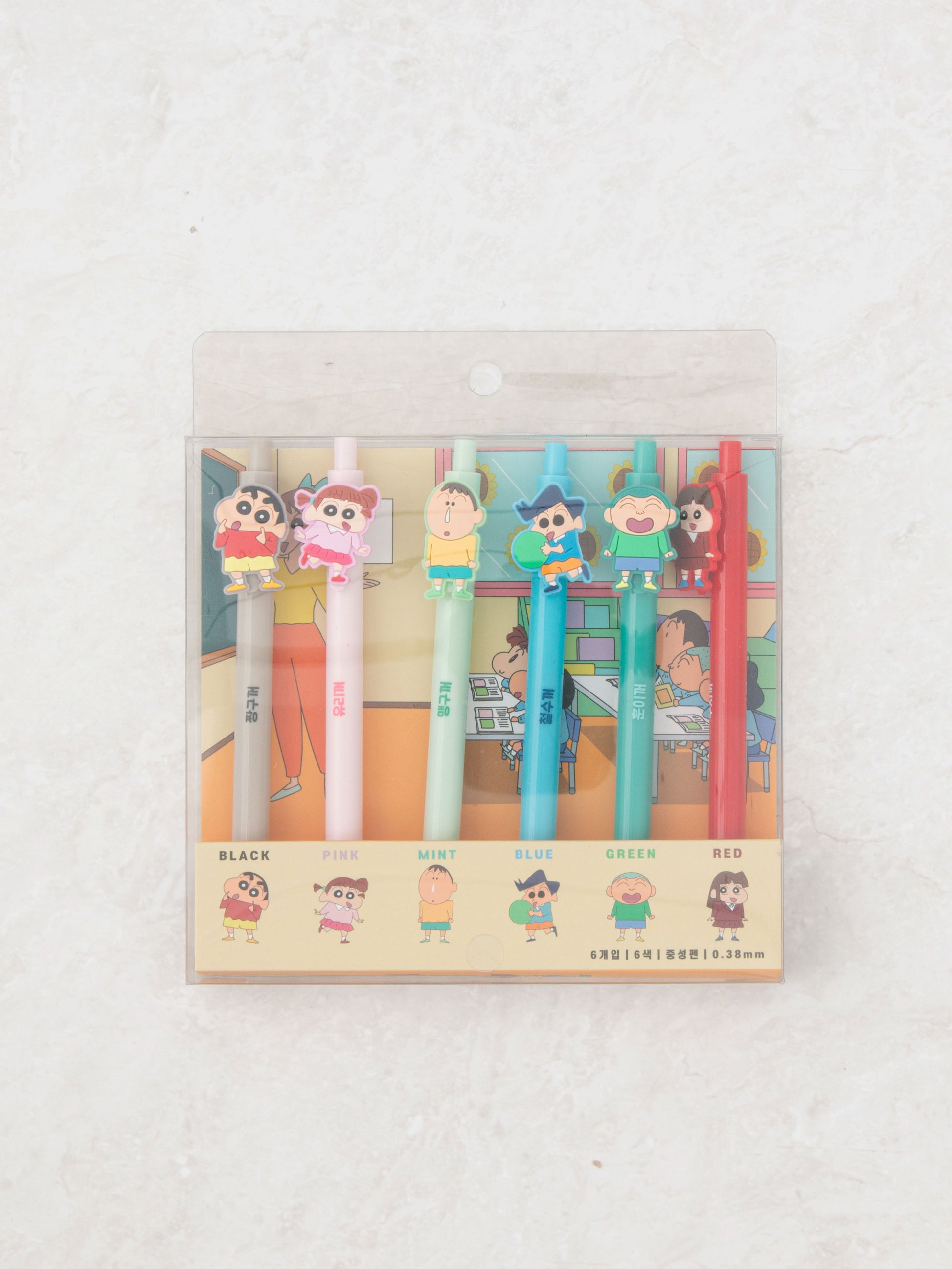 - Brighten your workspace with this adorable **Shin-chan Gel Pen Set** featuring 6 vibrant colors.